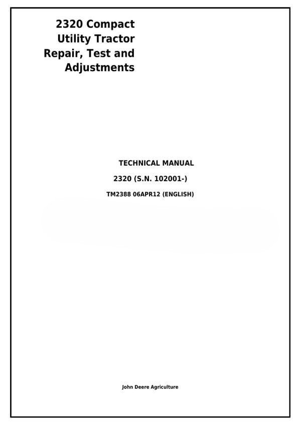 John Deere 2320 Compact Utility Tractor Test Technical Manual